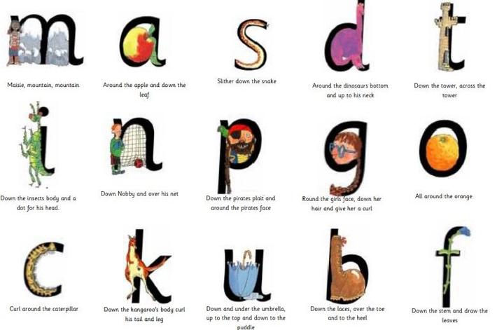 Set 1 sounds are taught in the following order. Sounds that are written with two letters are known as 'special friends'.