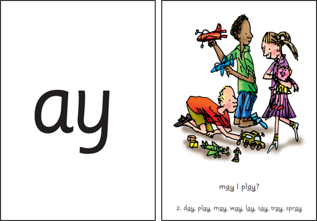 Each set 2 sound is known as a ‘special friend’ as two letters go together to make one sound (a diagraph). Each of the special friends has a rhyme (known as a ditty) to go with it. Set 2 sounds are shaded grey below, with an example of a set 2 card that would be used to teach the sound.