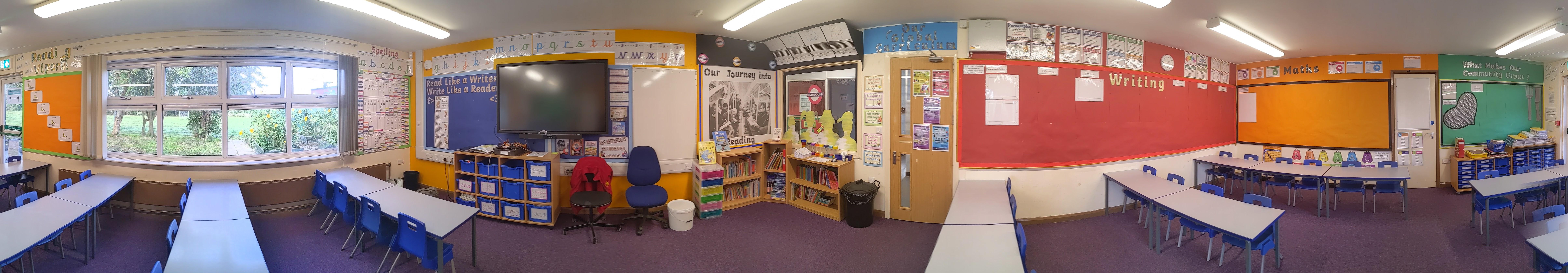 Here is a panorama of the classroom. It is set up ready for you to come in to on Thursday.