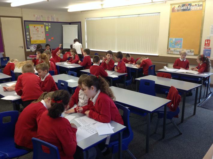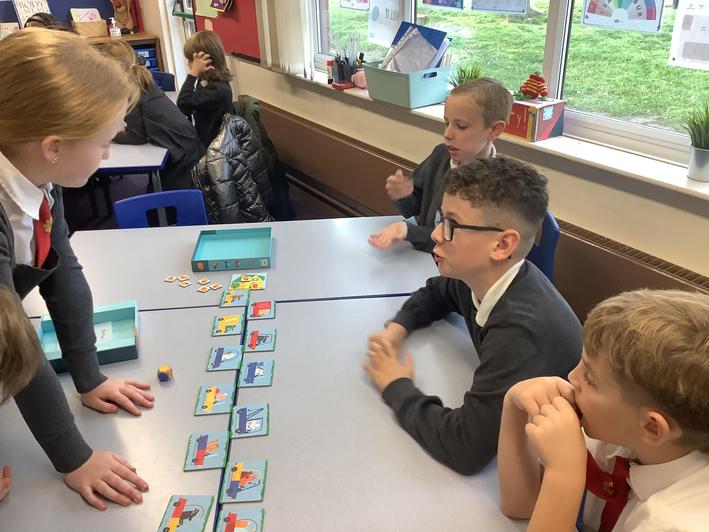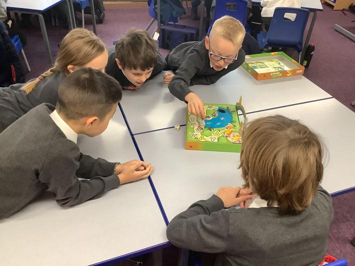 Year 4 testing out our knowledge of Place value by playing the 'Nasty Game' . Lots of fun and very competititive too!