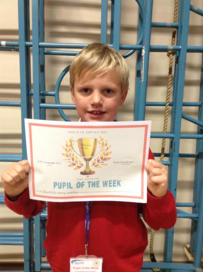 This week Thomas was picked as pupil of the week due to his outstanding work ethic.  He always puts in 100% effort and wants to do his best.  Well done Thomas.
