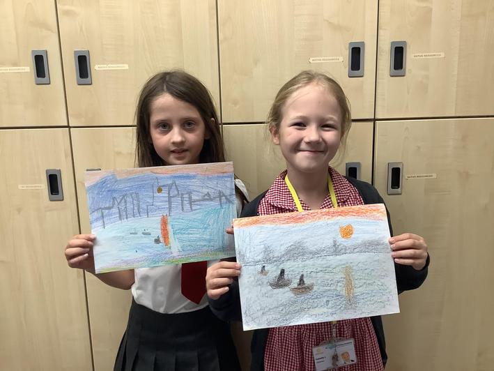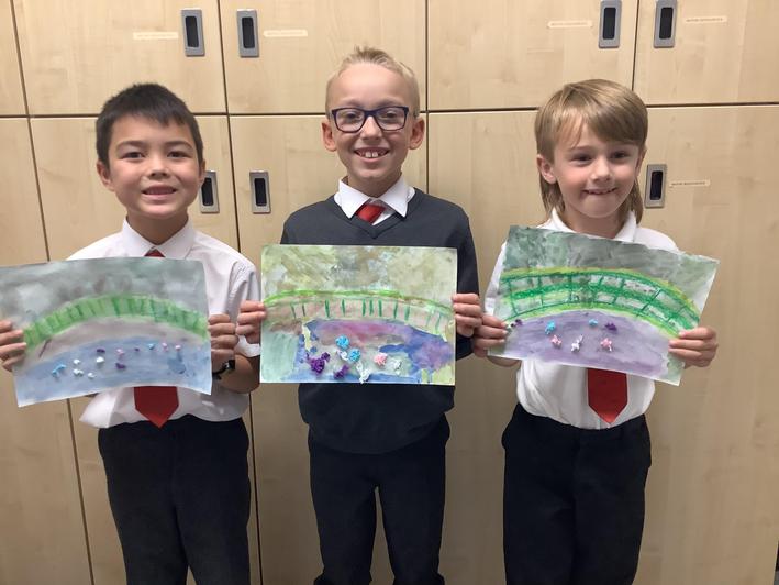 We have been looking at paintings by the French Impressionist artist, Claude Monet. Using oil pastels and water colours we then had a go recreating our own versions
