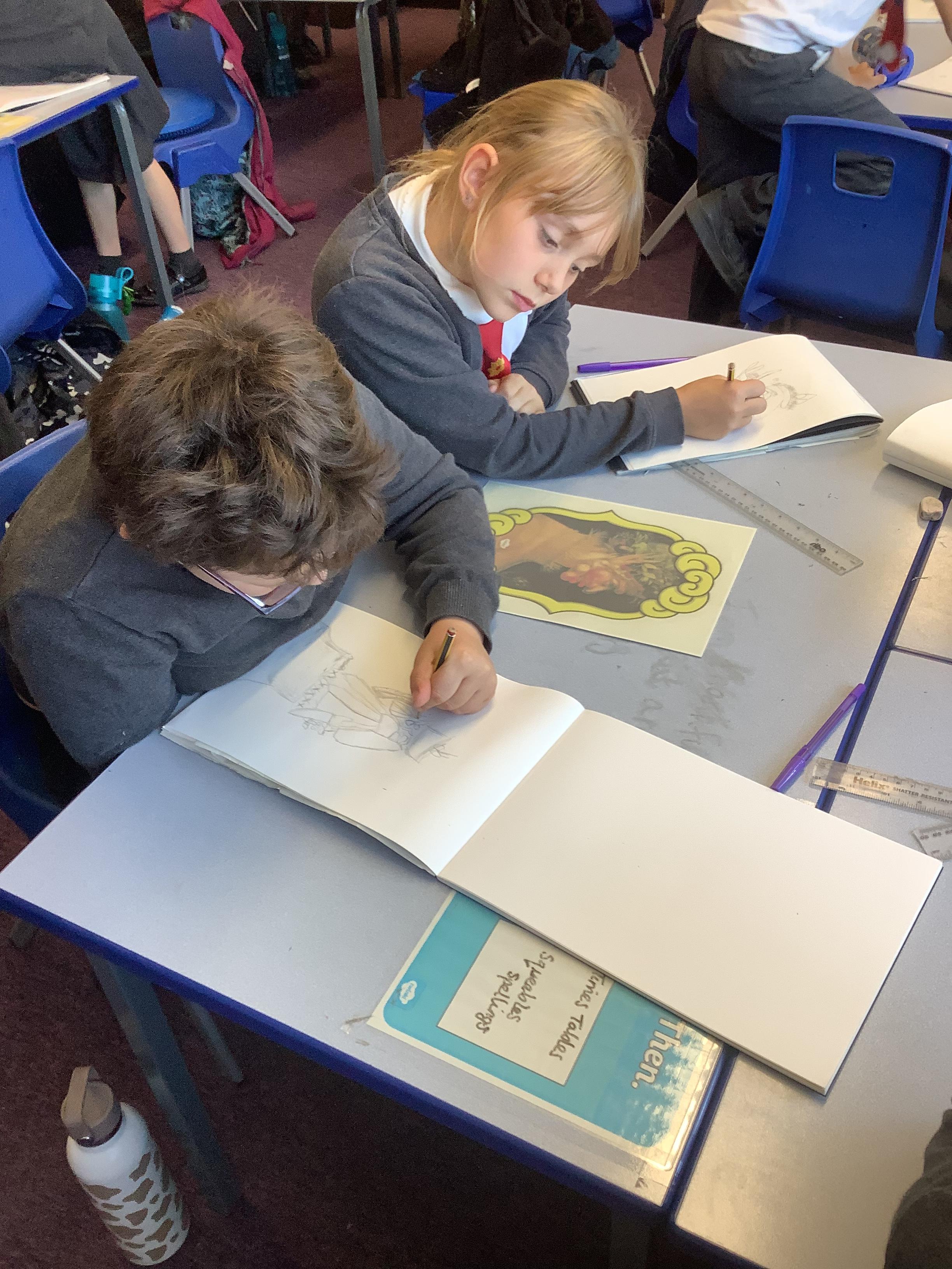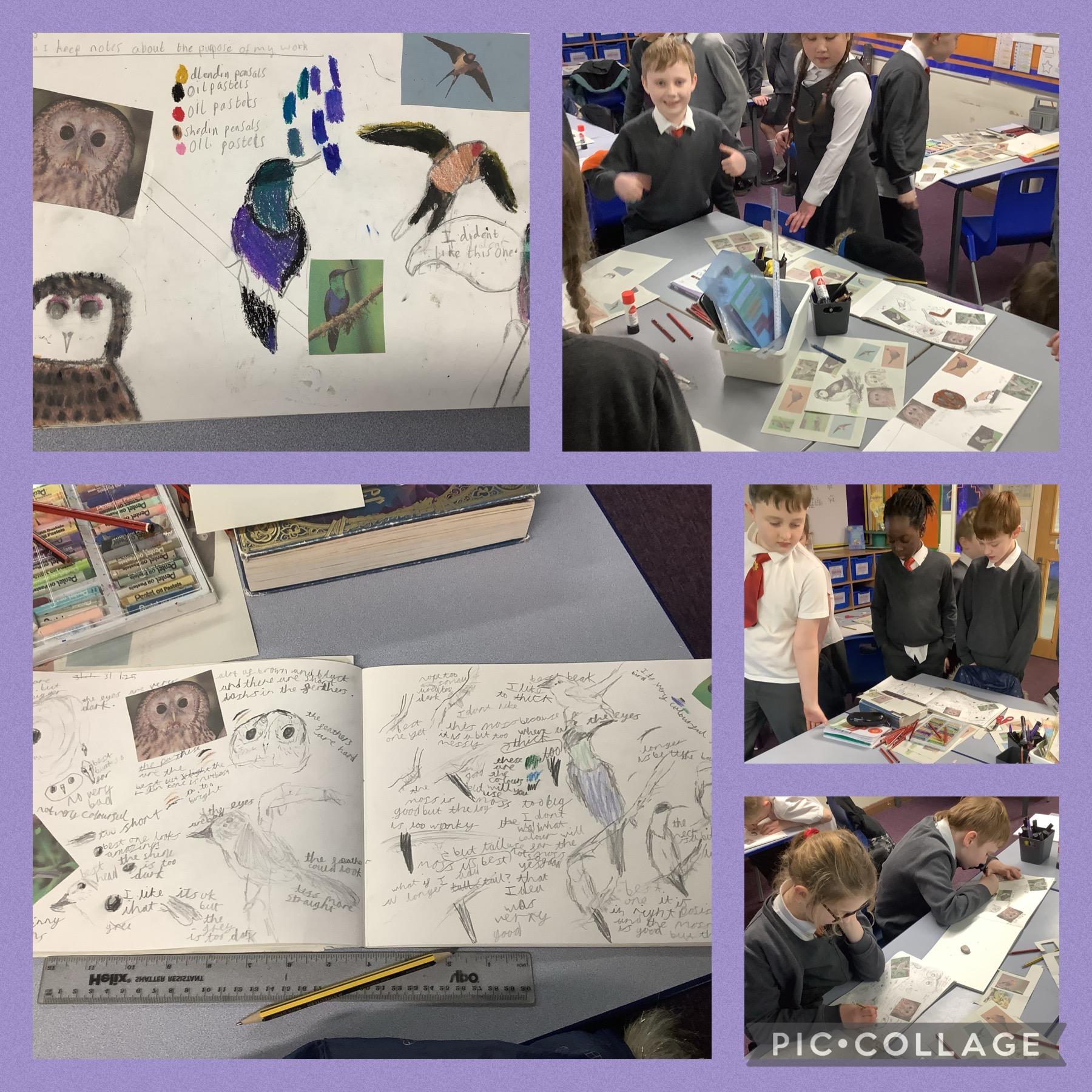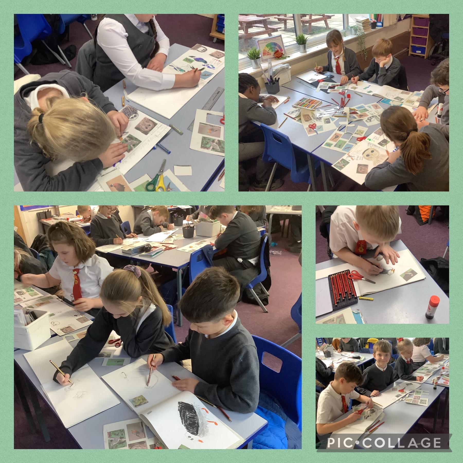 Year 4 developing their sketchbooks using a range of skills and mixed media as part of our Explore, What on earth is going on?