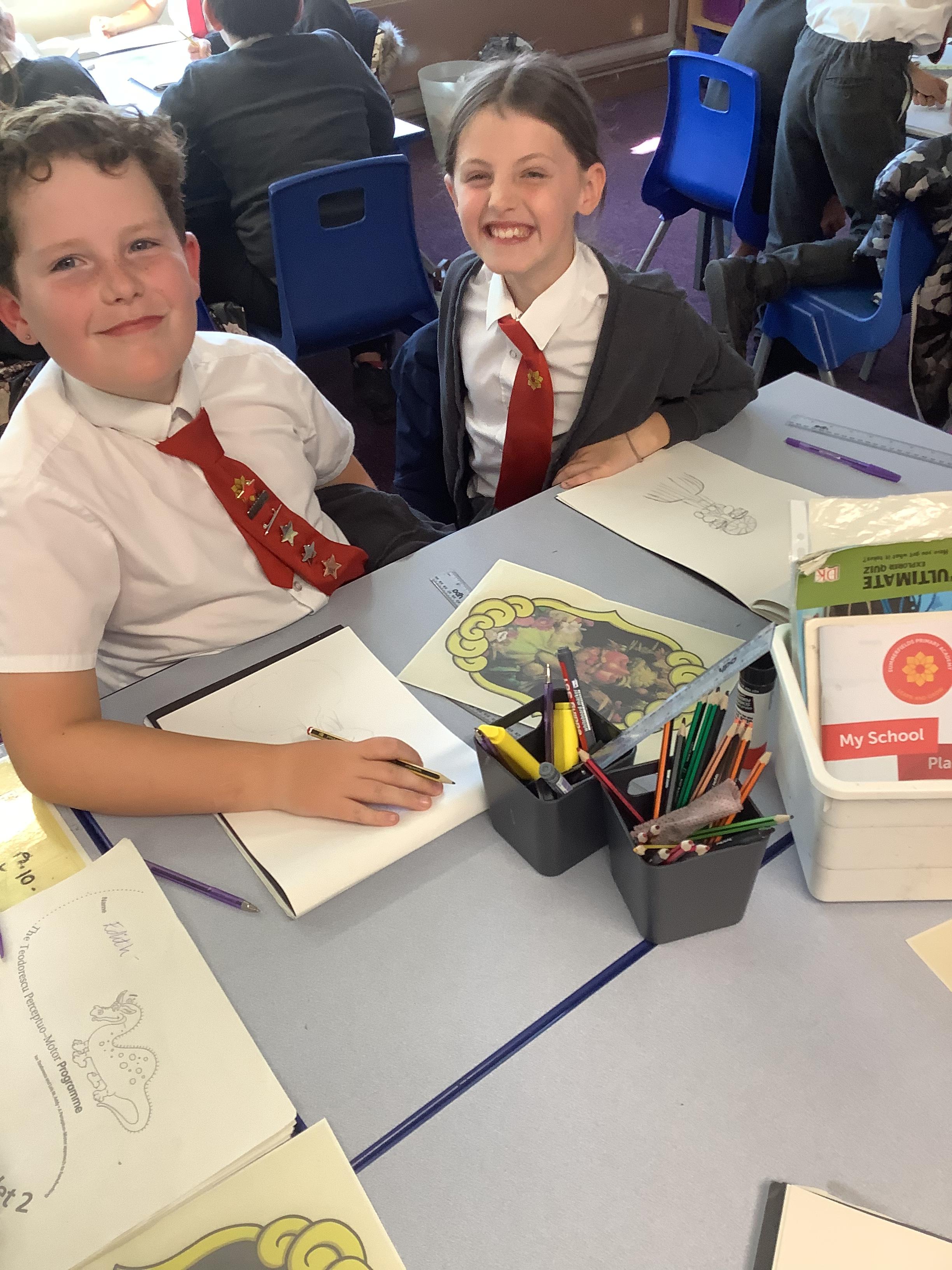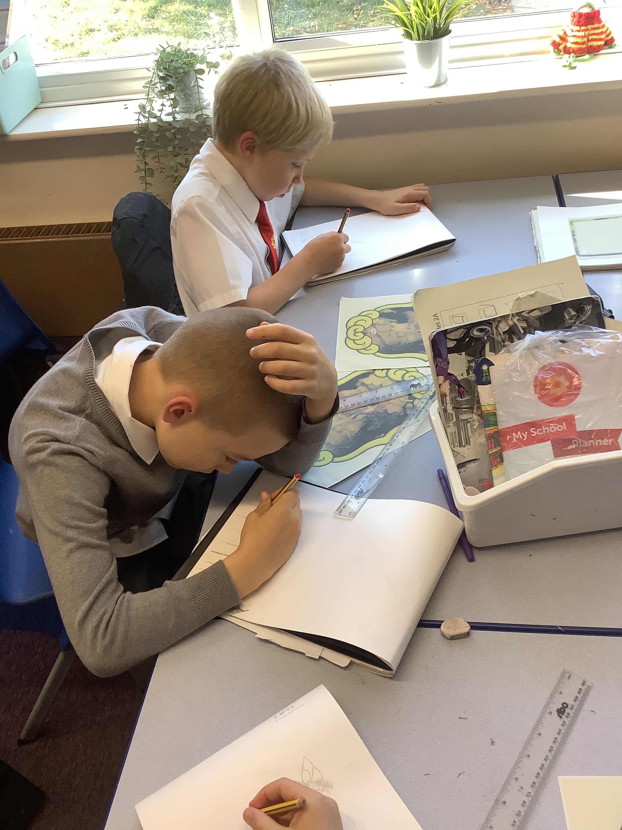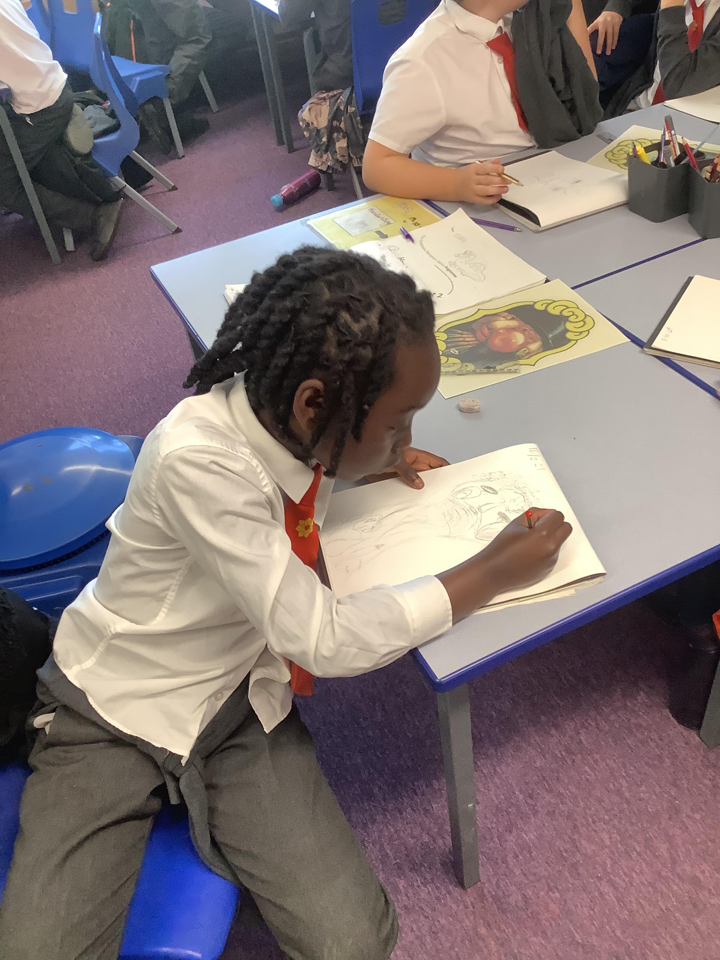 Year 4 developing their sketchbooks using a range of skills and mixed media as part of our Explore, What on earth is going on?