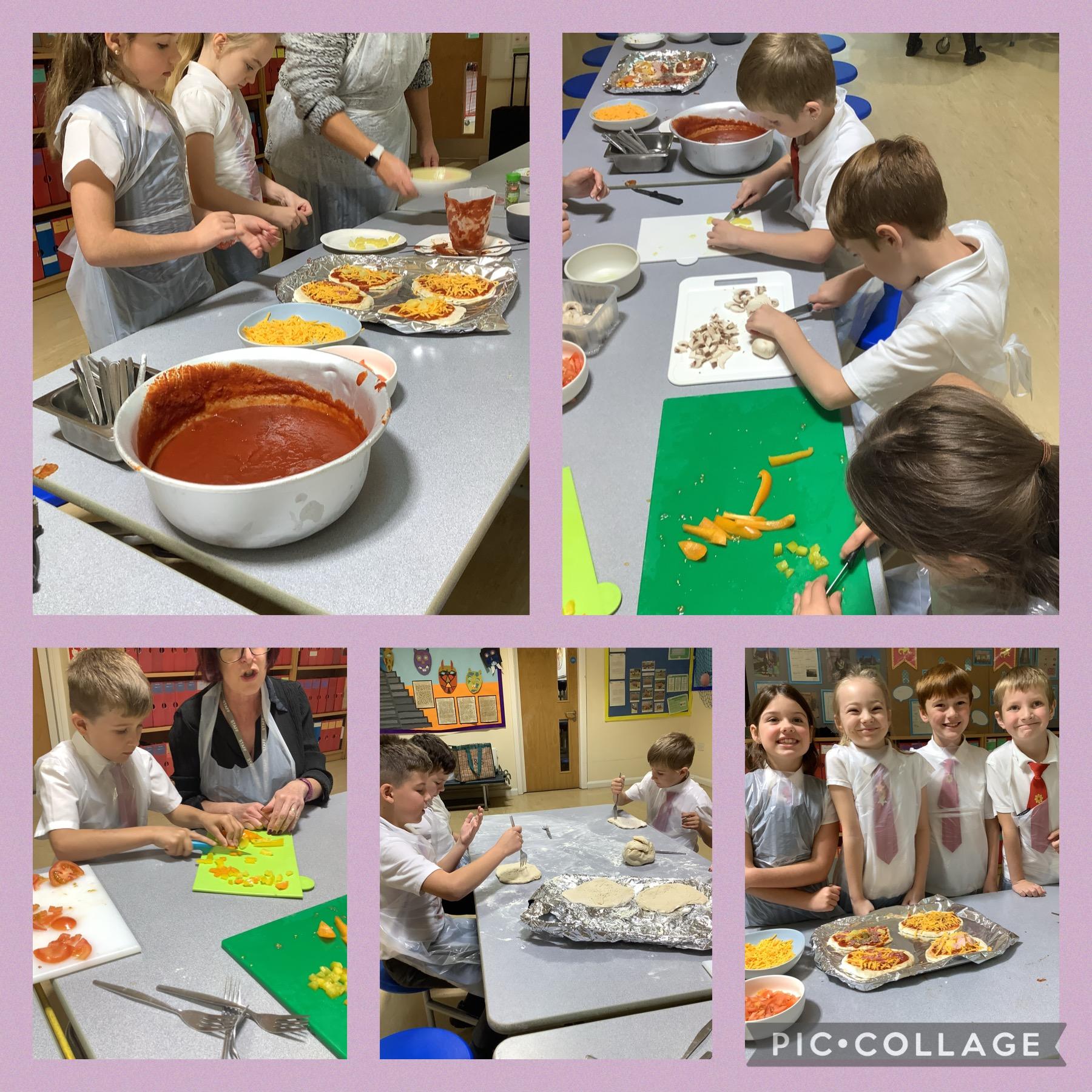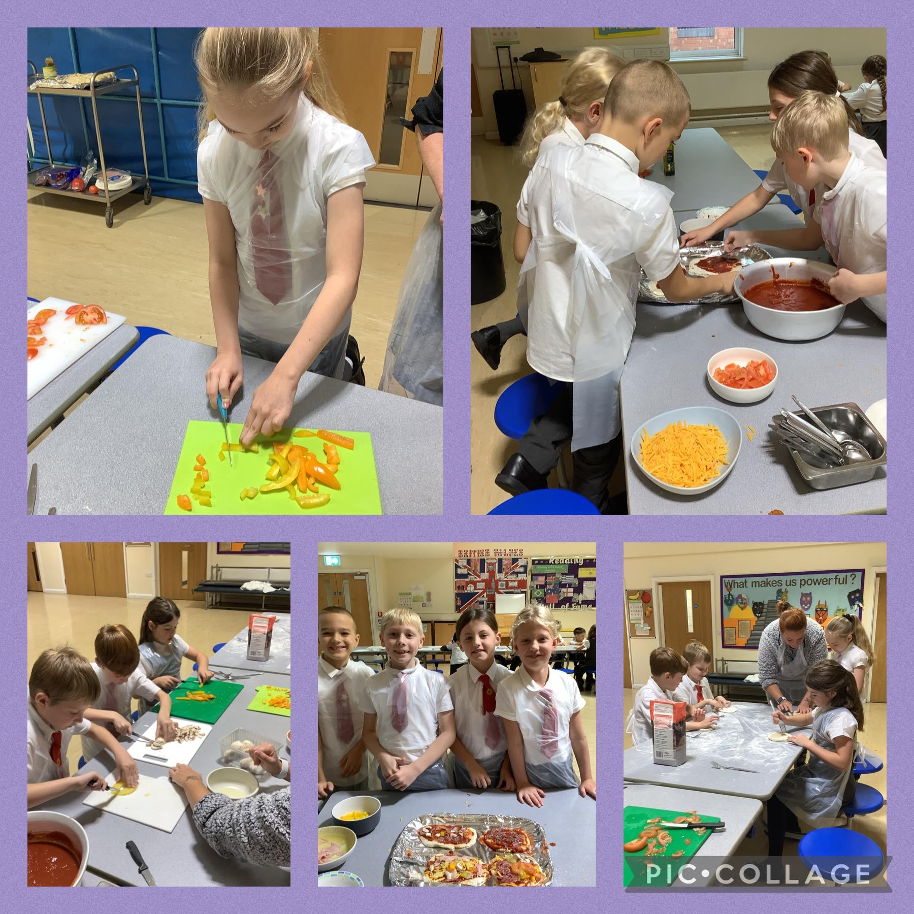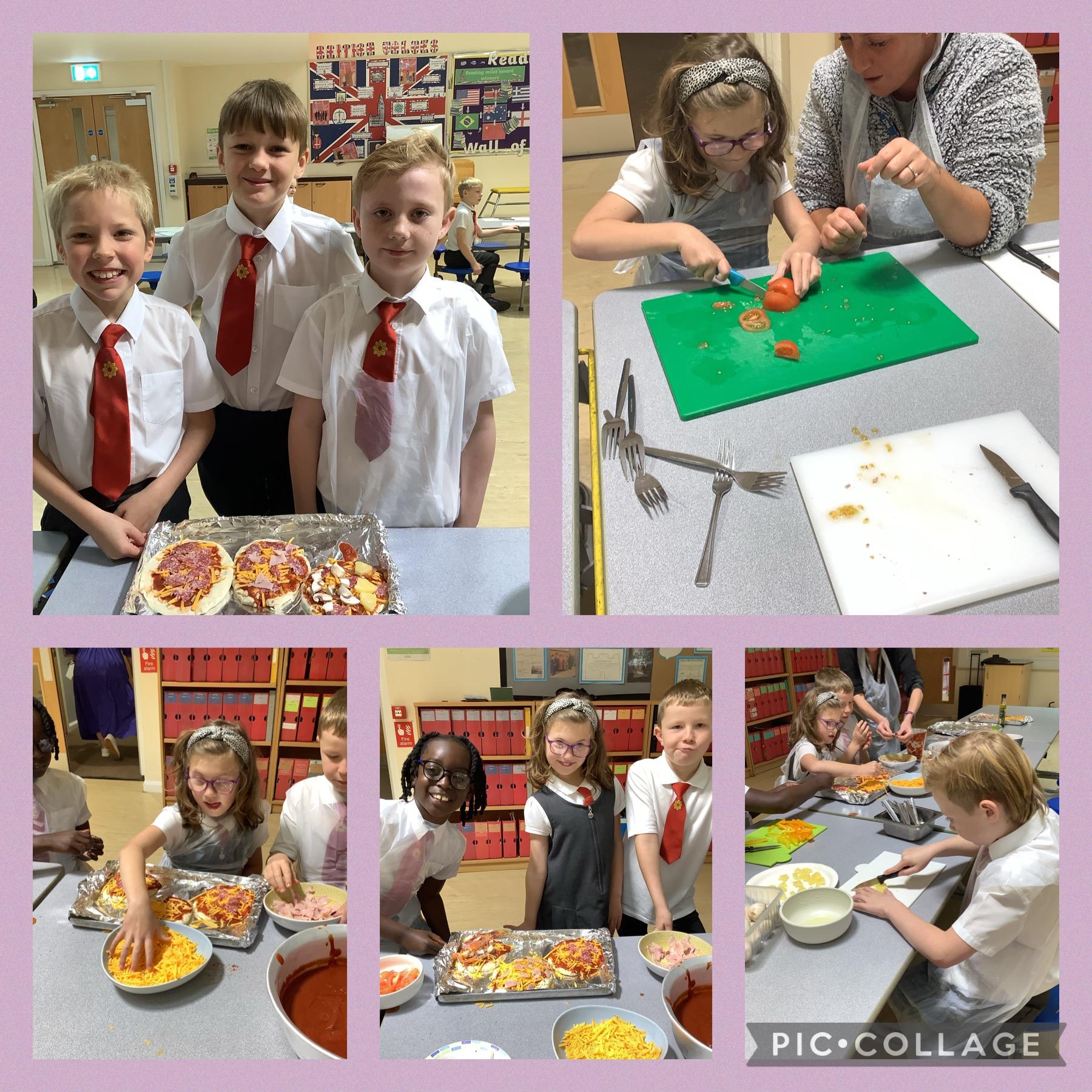 We have had a very exciting day in Year 4. This morning started with all of us making pizza and salad, a traditional dish from Italy. We all had a go at chopping the different ingredients before selecting our favourite toppings and constructing our pizzas. While these were cooking, we researched other traditional foods and drinks still enjoyed by Italians today.