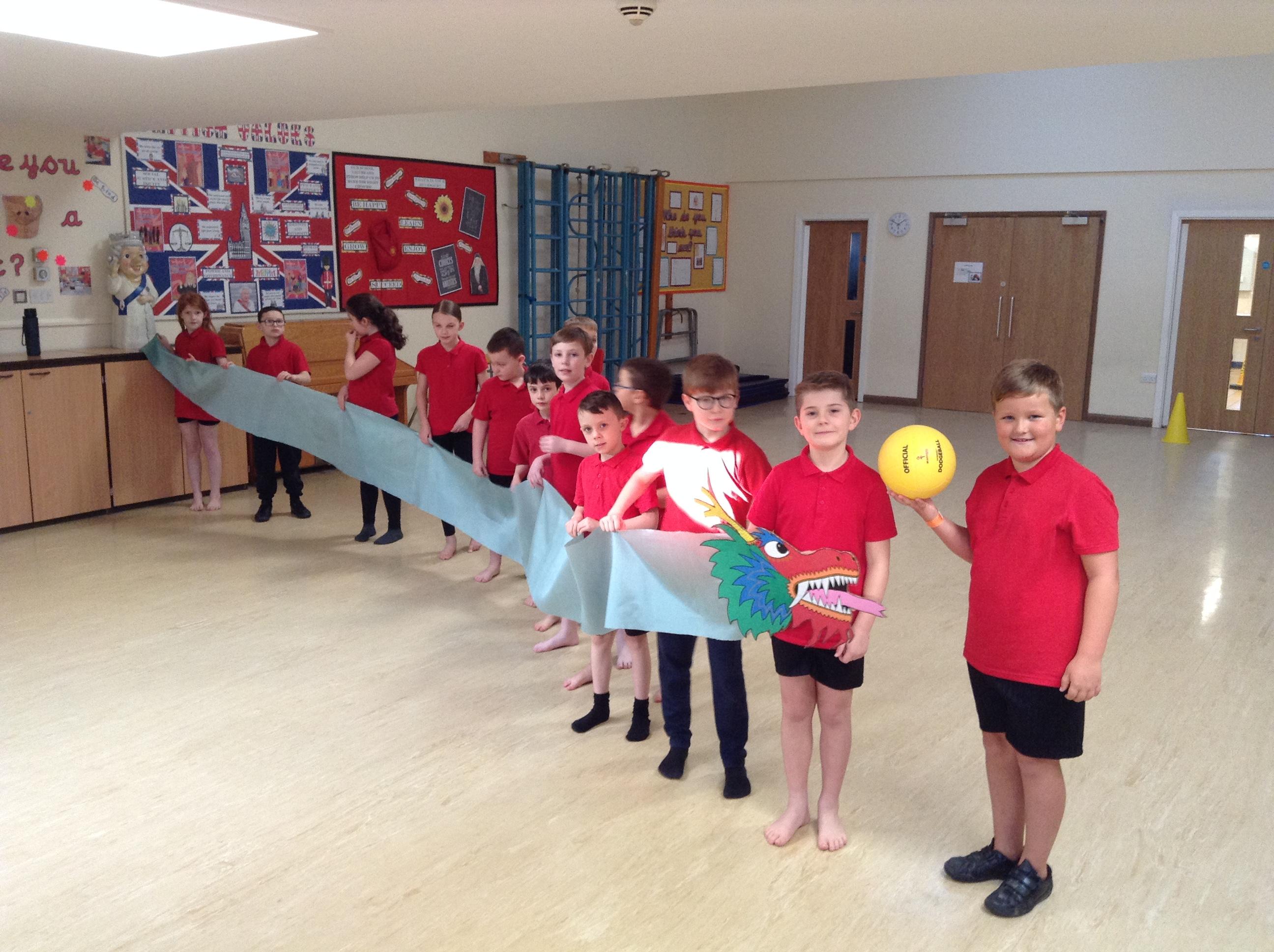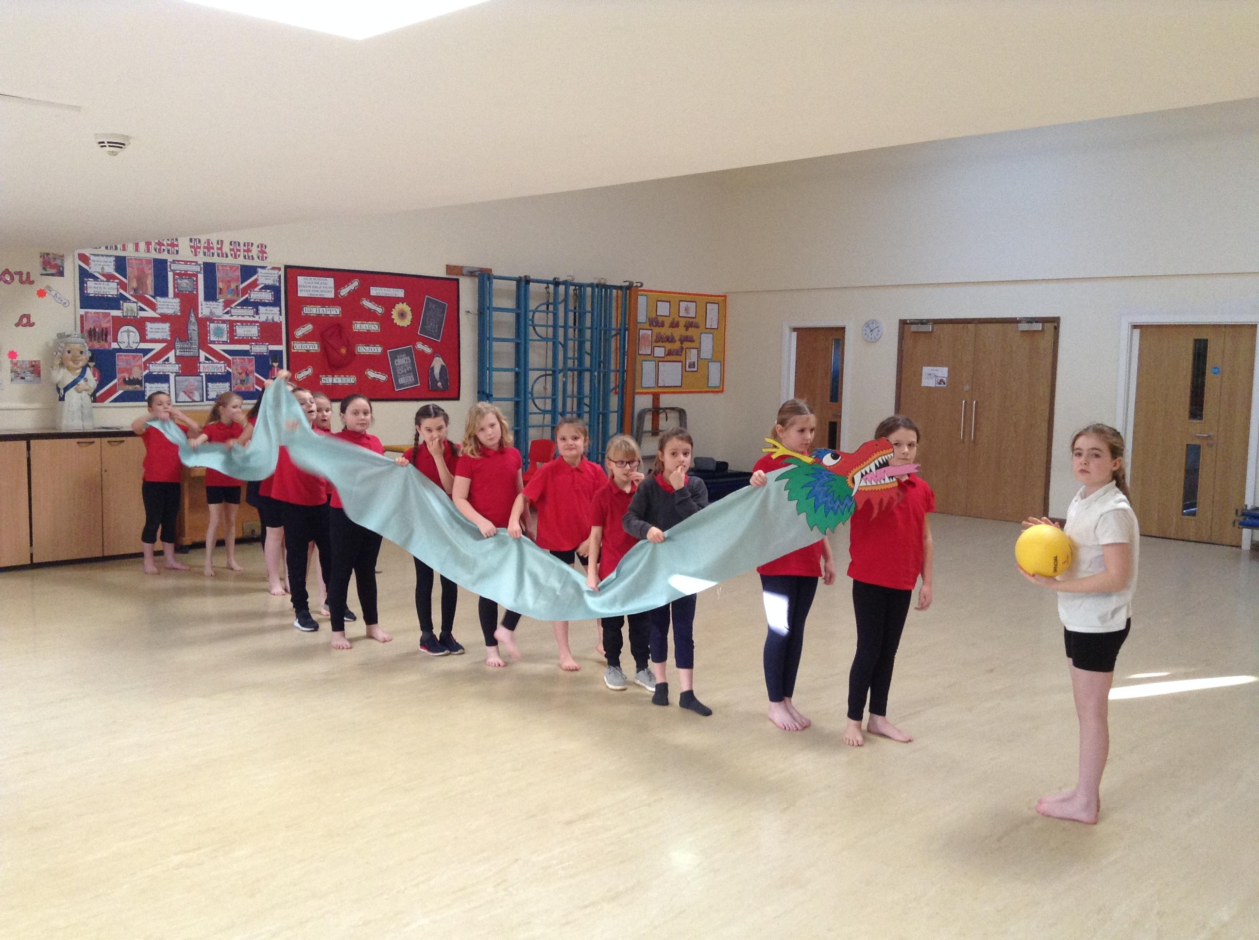 Today's PE session - We have been dancing with a dragon for Chinese New Year