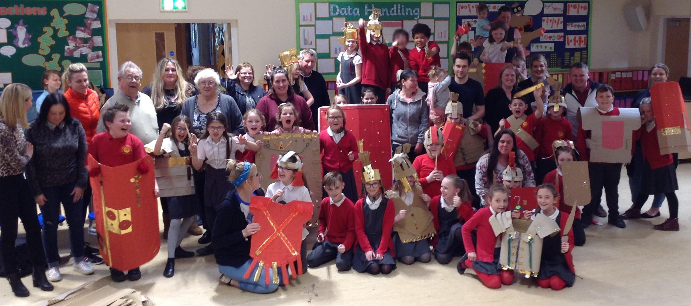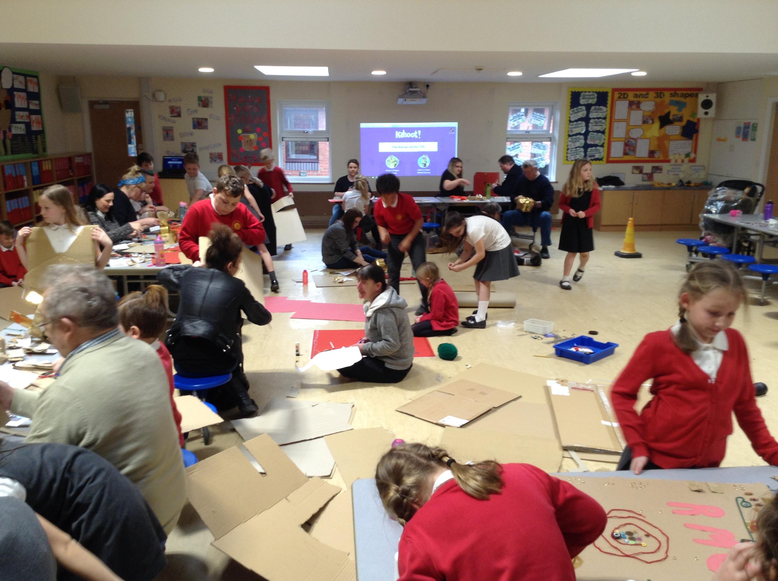 Our Roman craft afternoon Thank you to everyone who took part and donated materials to craft with. Year 4 enjoyed making different parts of a Roman soldier's armour and getting the chance to try wearing it! It was great to see everyone working together and being really creative.