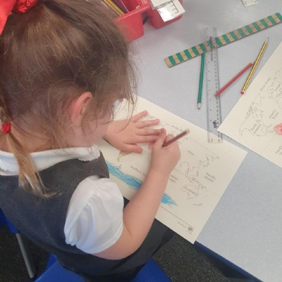 We used our knowledge of maps to locate and identify the town and cities whilst using adjectives to describe the landmarks and their features.
