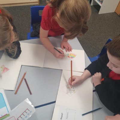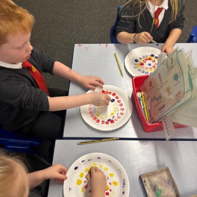 This morning Y1 are designing some Diwali pictures, putting their fine motor skills to great use