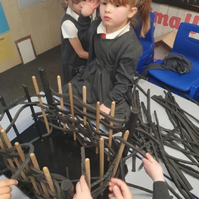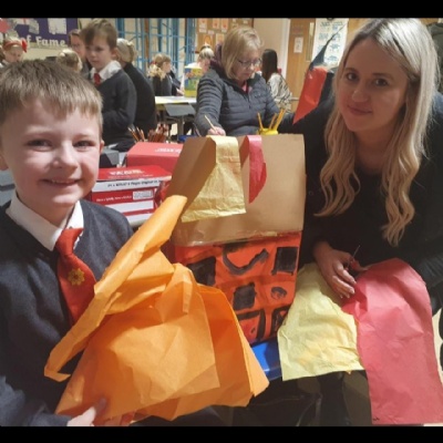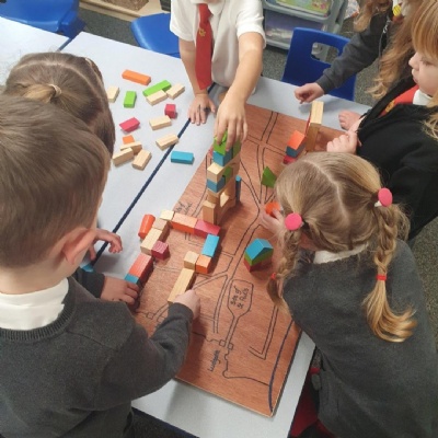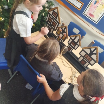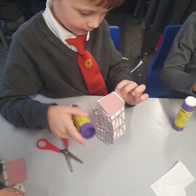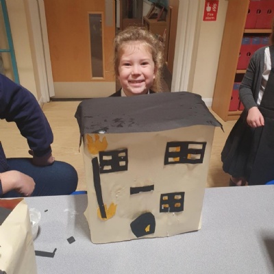 This afternoon we worked hard to make our own Great Fire of London Monument.