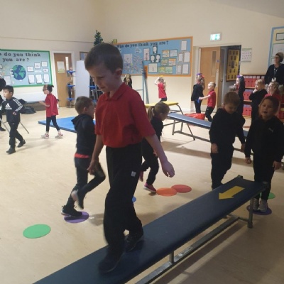 Using our gross motor , turn taking, balancing and instructing skills this morning in PE with Mr Rollinson �� I love how our class support each other and boost each others confidence ❤️