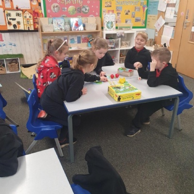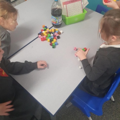 Today we have been playing a team game with the multilink cubes. We each took it in turns to roll the dice �� and gather the amount of cubes shown on the dice. We then identified who had the most, least and if anyone had any equal amounts ��