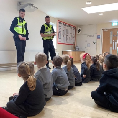 This morning we have some very special visitors in school. They are telling us all about their job and what they do to keep the community safe.
