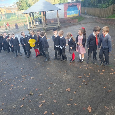 We have been discussing how people worked together and put out the fire �� and how that looks different to our modern day society. People from everywhere in London came together to collect buckets of water from the River Thames �� They then passed it up the line and the person at the end threw it on the fire and ran back to the beginning of the line to start the process again. Today we practiced this and beat our personal best at 20 seconds. Great teamwork you lot ��