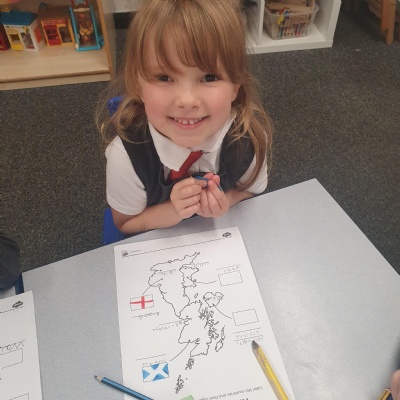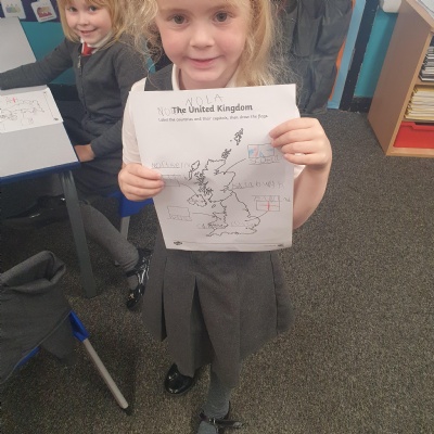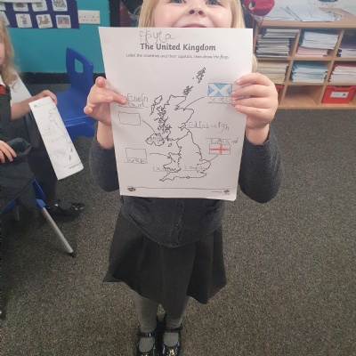 Our Geography work based on the United Kingdom ���� We looked at what countries make up the UK and their capital cities. We even had a go at drawing the flags. They look incredible!