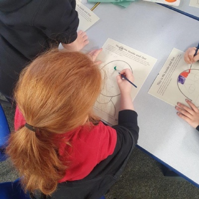 We identified our 3 primary colours ������ and discussed how these are used to make our secondary colours on the colour wheel ��