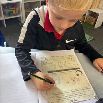 This morning in RE Y1 are learning about Aqiqah , to understand what it means to belong to a Muslim community. We have some fabulous drawings of a Muslim Aqiqah ceremony. ⭐️⭐️⭐️