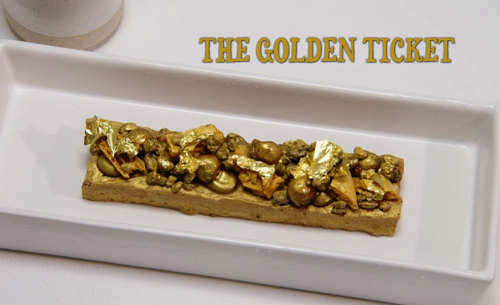 A golden chocolate bar based on  Charlie and the Chocolate Factory