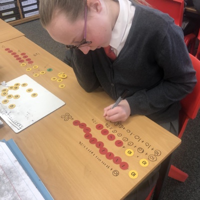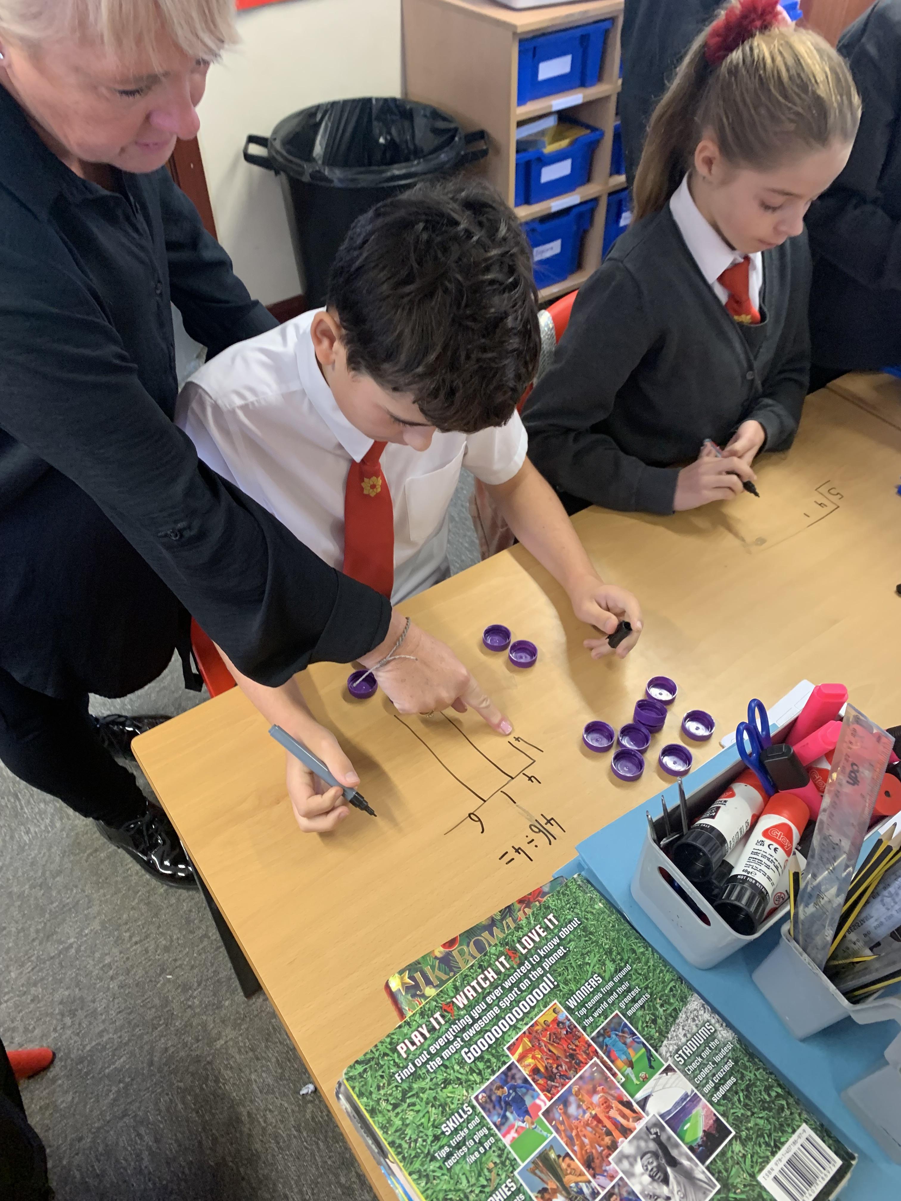 Long division using concrete and pictorial