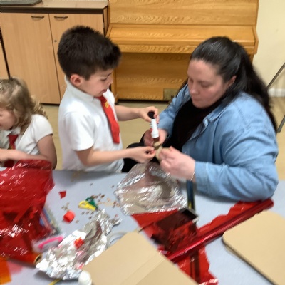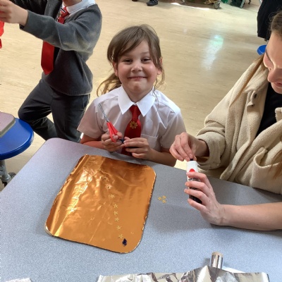 This week we've had a stay and play craft session with our parents. We made shields, crowns and helmets linked to our What makes Us Powerful? explore