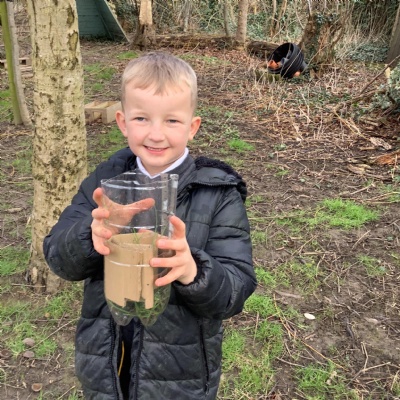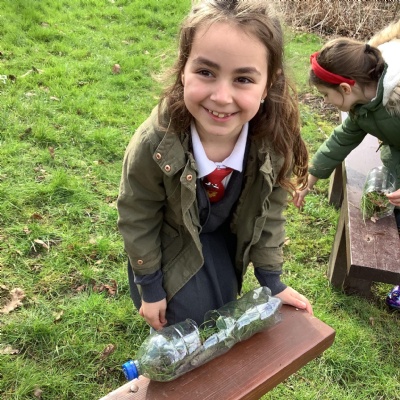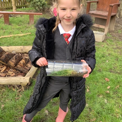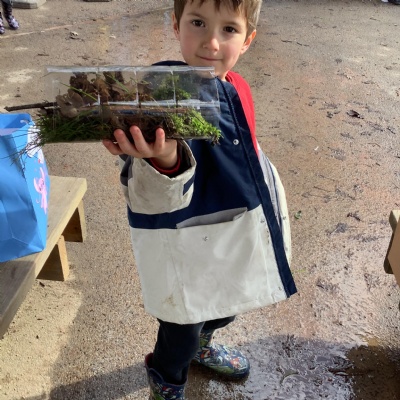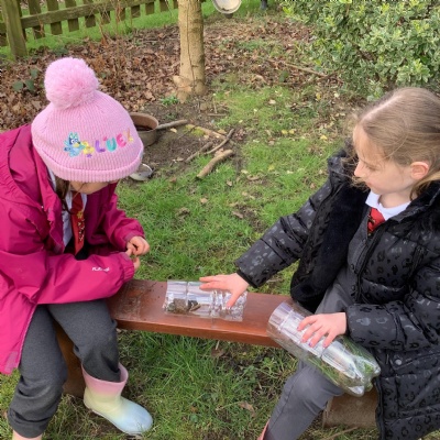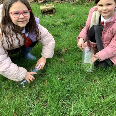 In science we are learning about micro habitats and mini beasts so we went into the woodland and designed and built bug hotels for the creatures around school