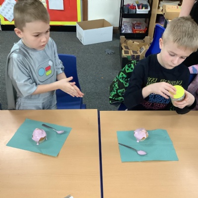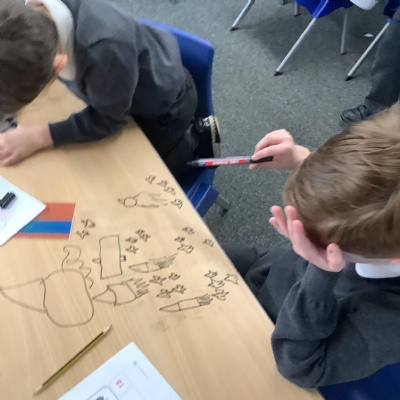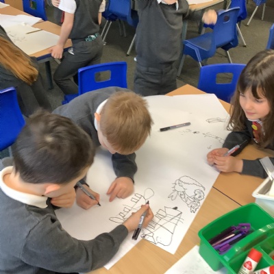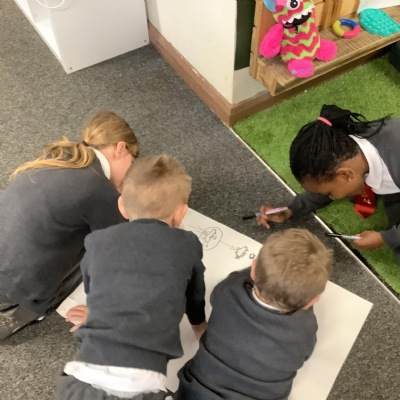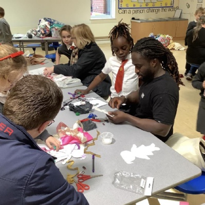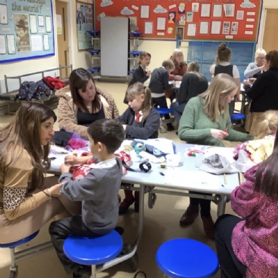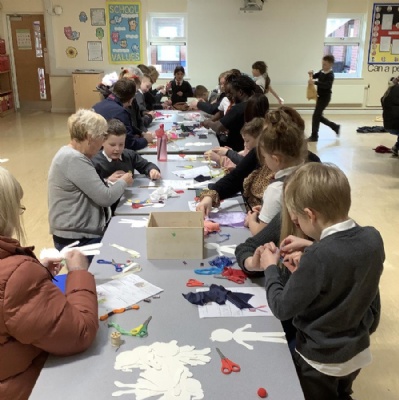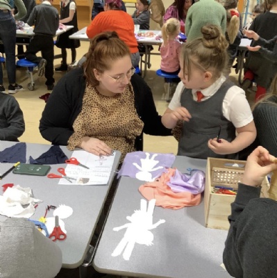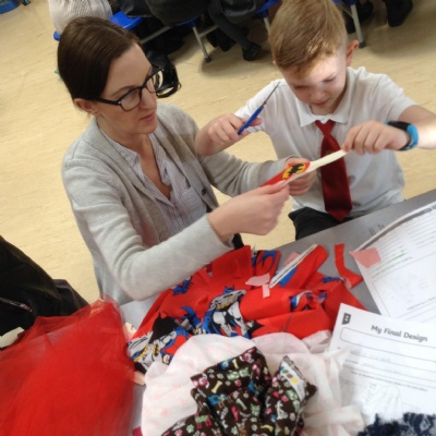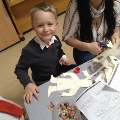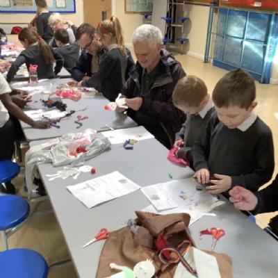 Today KS1 welcomed grown ups in as part of our Inspire Day. Our task was to design and make a suitable outfit for the Yetti in 'Betty and the Yetti'.