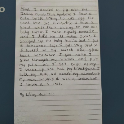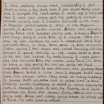 Literacy-Can you plan and write a story that begins with the opener 'I was walking along when suddenly I fell down a hole...a big, dark hole!' Remember to engage the reader and think about your beginning, middle and end. I can't wait to read them.