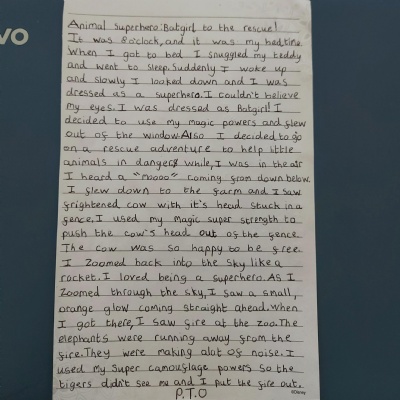 What is a super hero? Can you write about a super hero and tell me all about them? It could be someone who you know, someone famous or it could be a imaginary character. You could research them and draw them. Tell me why they are a super hero and what they do.