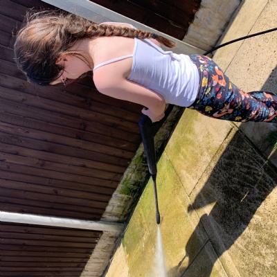 Lexi has been busy learning some life lessons with Mum and dad. She has been busy jet spraying the garden and making uniform bags for the NHS :) how thoughtful.