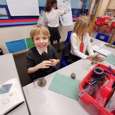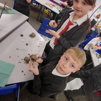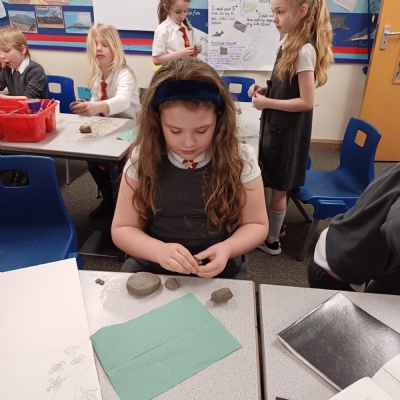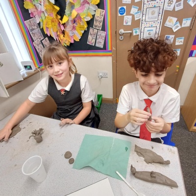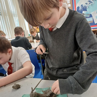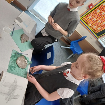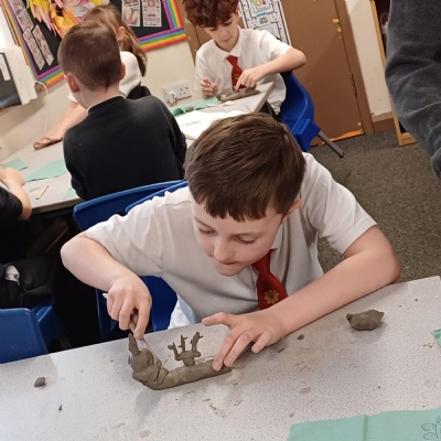 This week we are testing out how to mark make on clay ready to make our clay sea creatures. There are some really fab tiles that are pieces of art in their own right. Well done Year 3.
