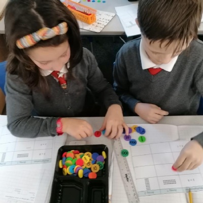 We have been learning to add and subtract mentally but first we need to practise with the place value counters.