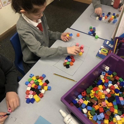 We are learning our 8 times tables. We love using manipulatives!